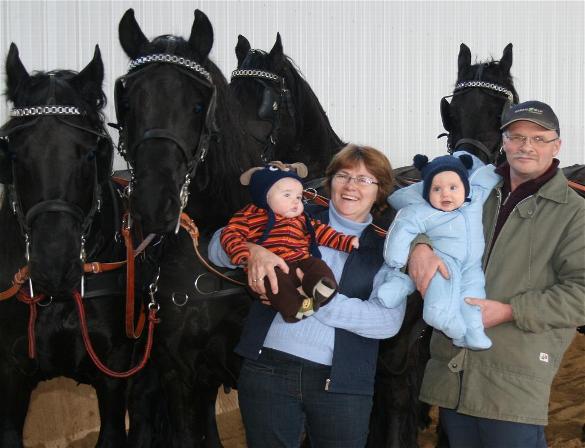 Gerben and Ria with their grandsons Logan and Eli; the new generation of horse runners and drivers.